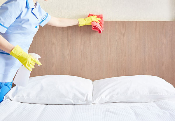 Services: Cleaning of surfaces, bathrooms, kitchen, bedrooms, and common areas.